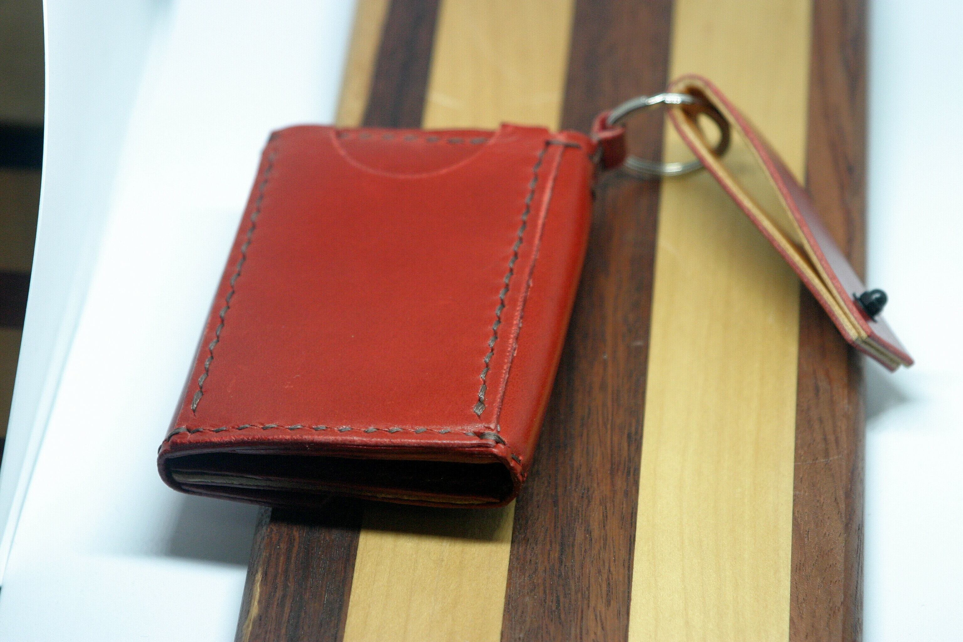 キーリング付きキーケースも揃えで作りましたのでセットで付けています。鍵が1つだけ付けれます。ご自身で鍵のストラップ穴部分に付属のネジとナットで締めて使って下さい。