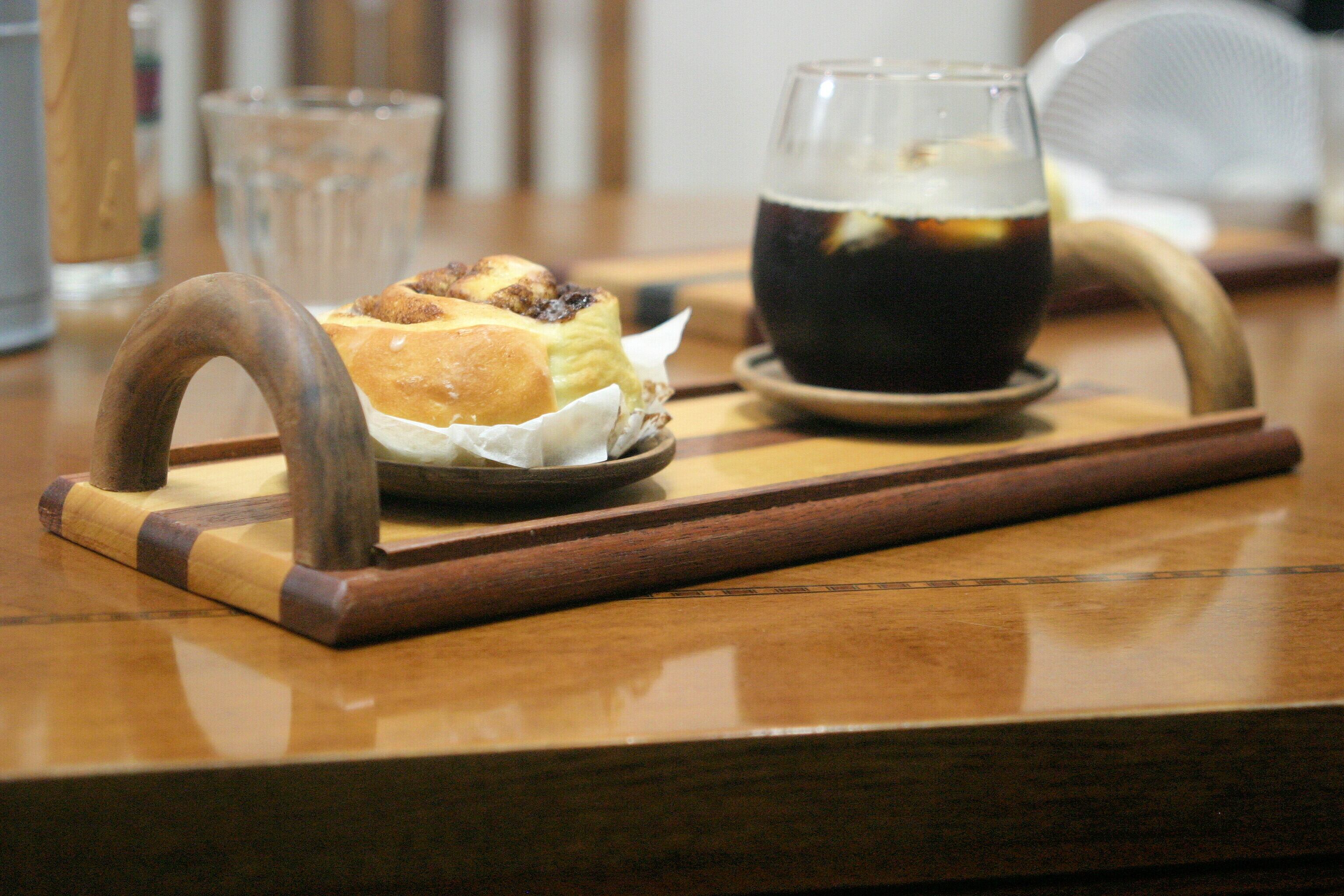 マグカップとケーキ皿が乗る幅で作っていますので、ちょうど良いサイズ感だと思っています。