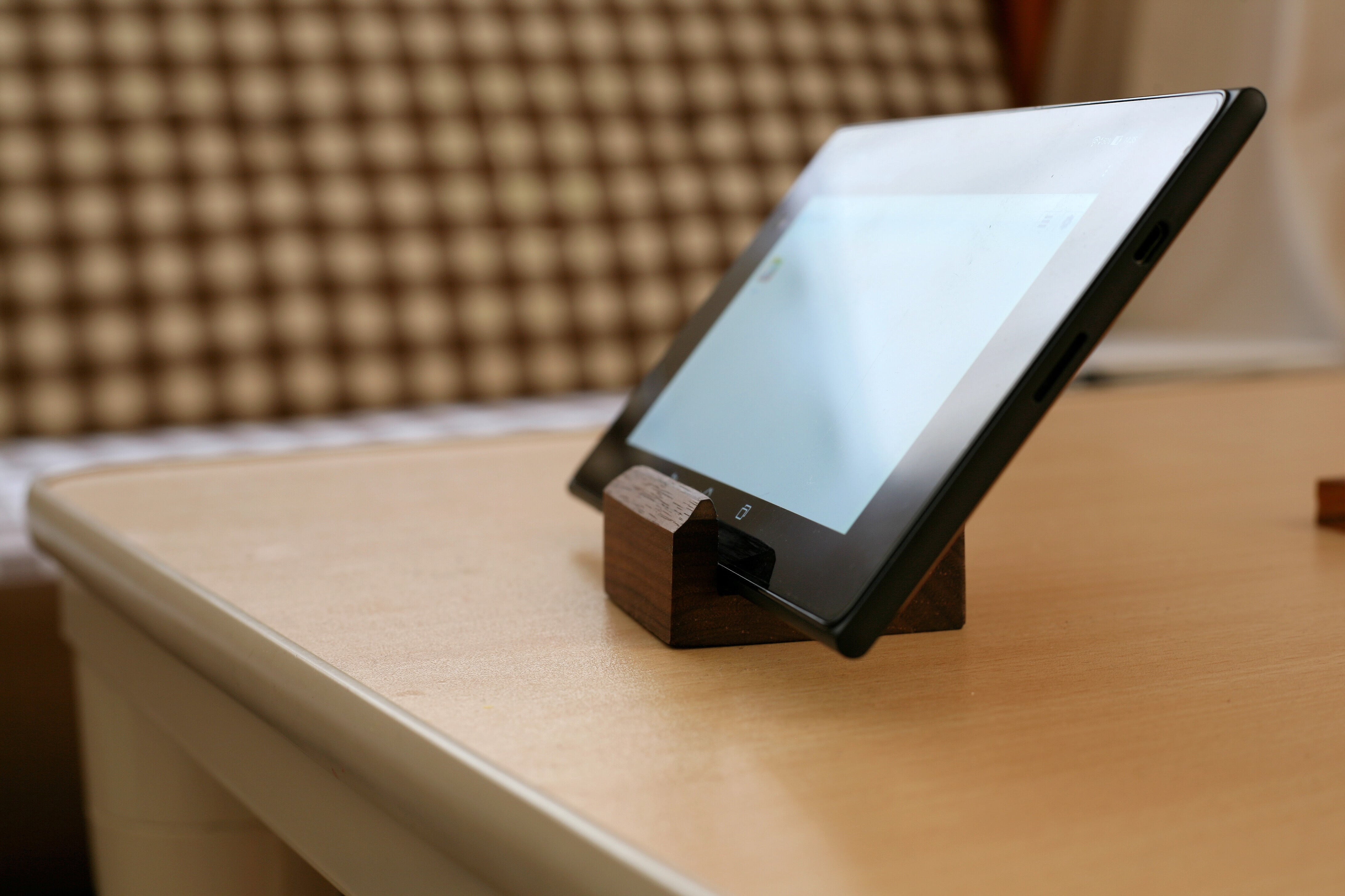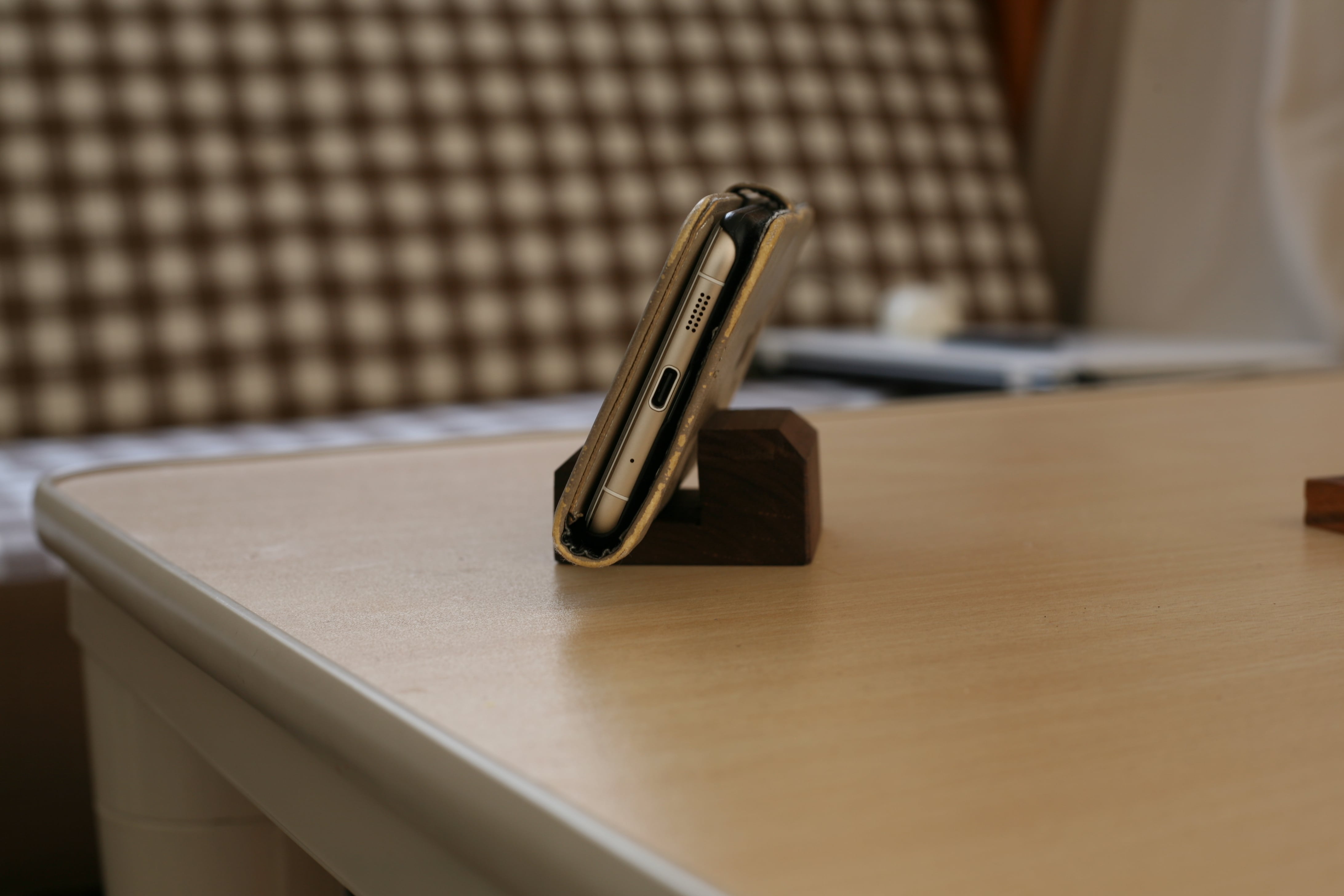 充電しながら立てかけておけるので、メッセージ等に気づきやすいです。 スマホの専用場所として、テレビ横などに置いていただけると、スマホが家の中で行方不明になりません。 かなり木目が綺麗に出ているのでインテリアとして置いてあっても違和感がありません!